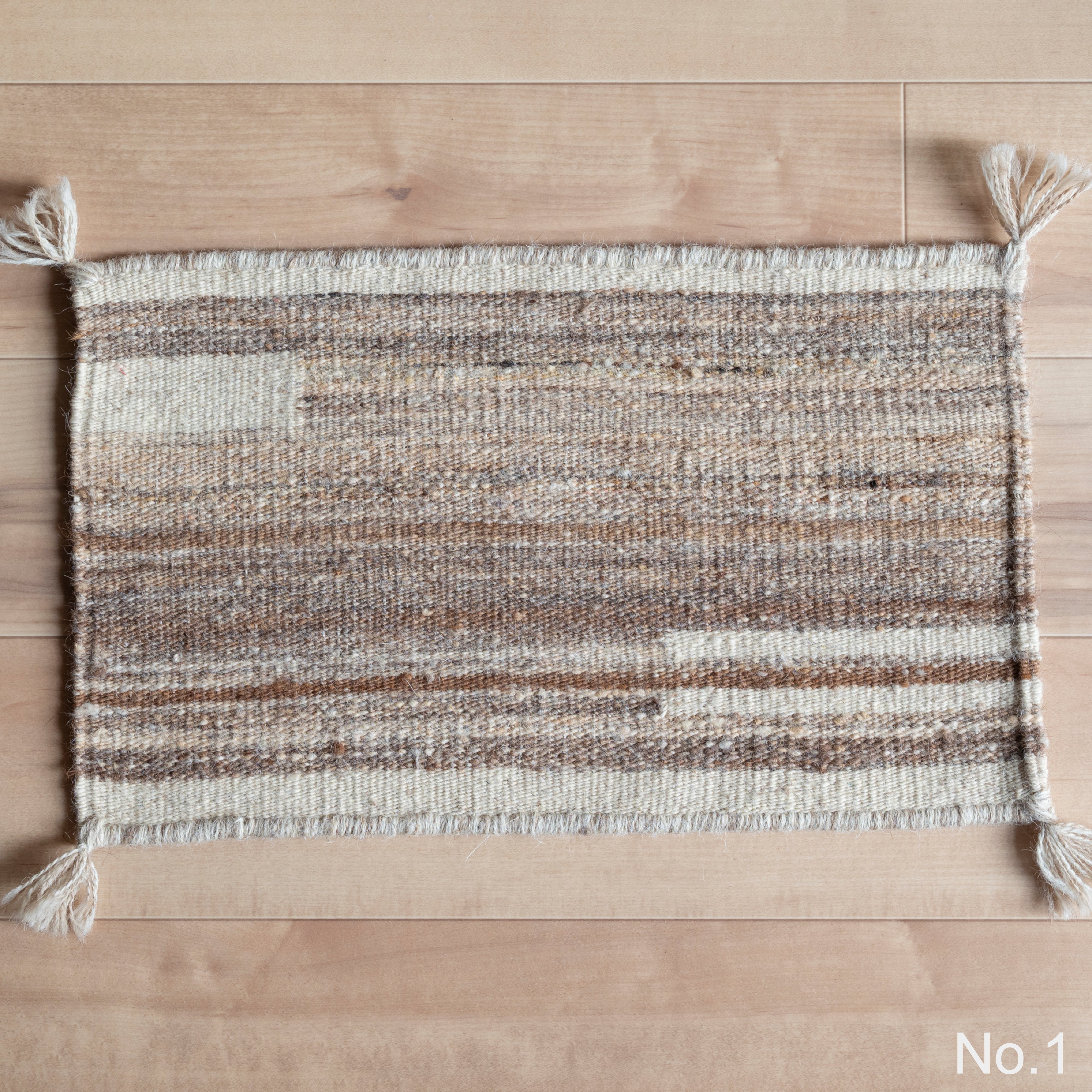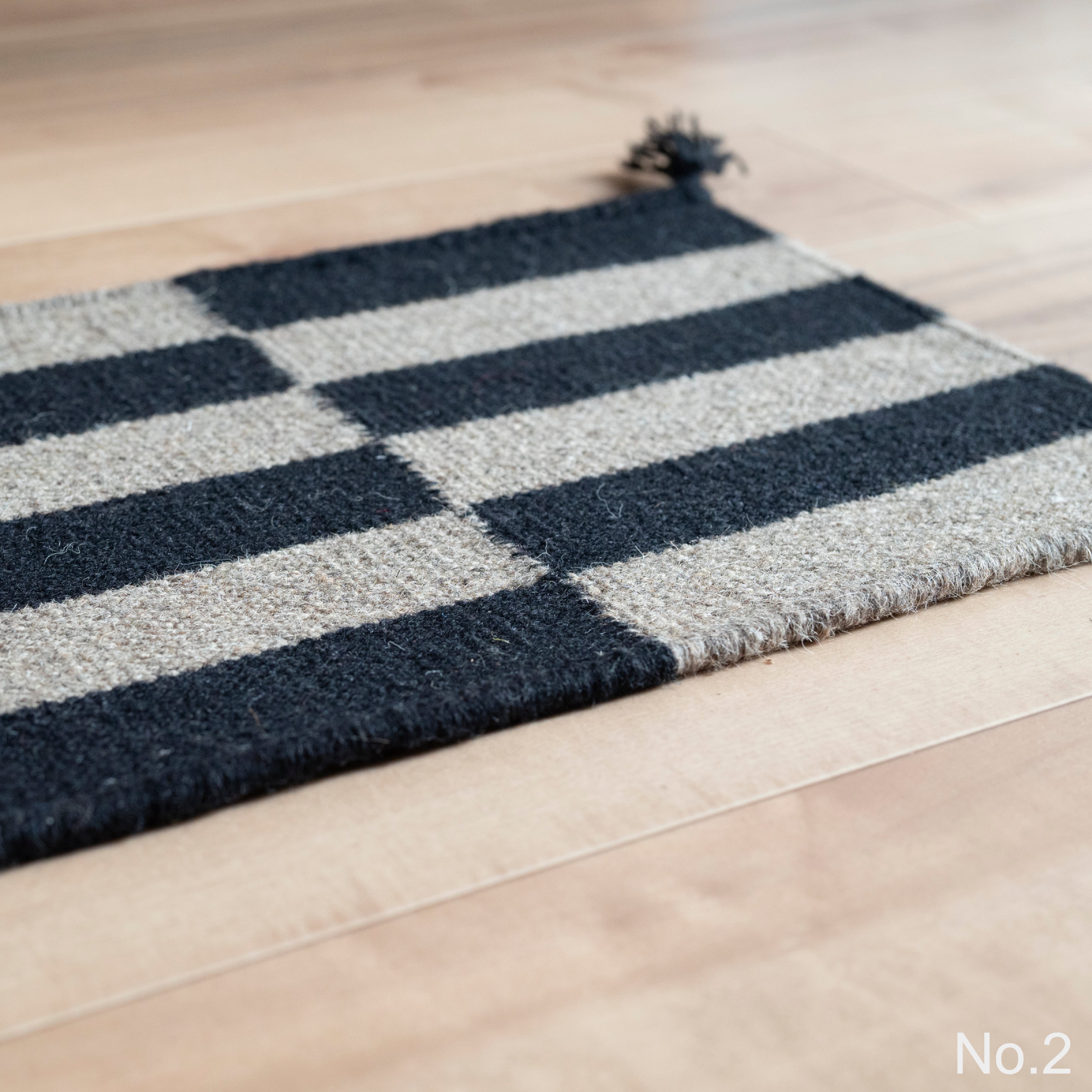パキスタン製 手織りミニマット 紺、グレー、ナチュラル [ 約48cm × 約32cm ※カラーによってサイズが異なります]