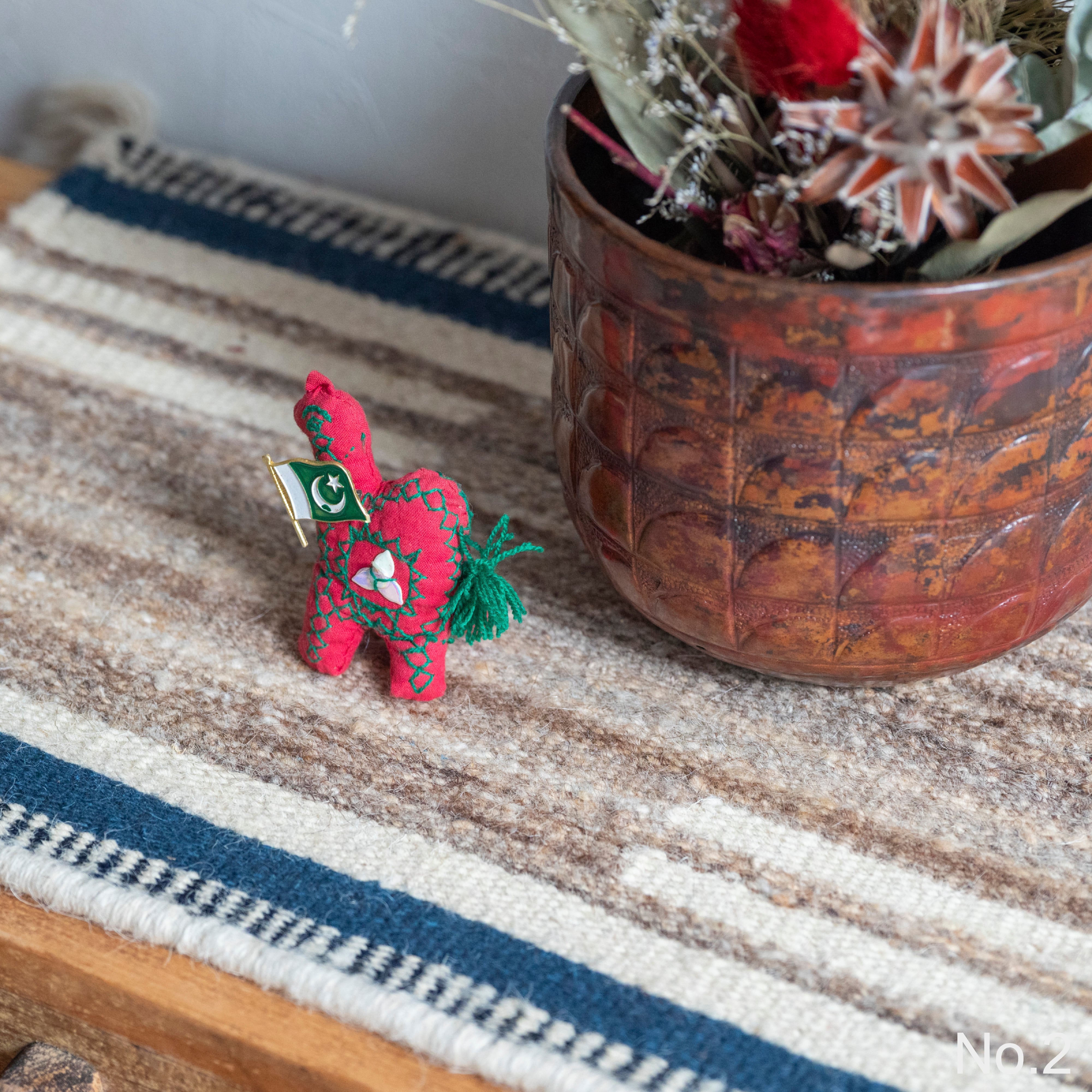 パキスタンの手織りのラグ、ミニサイズです。