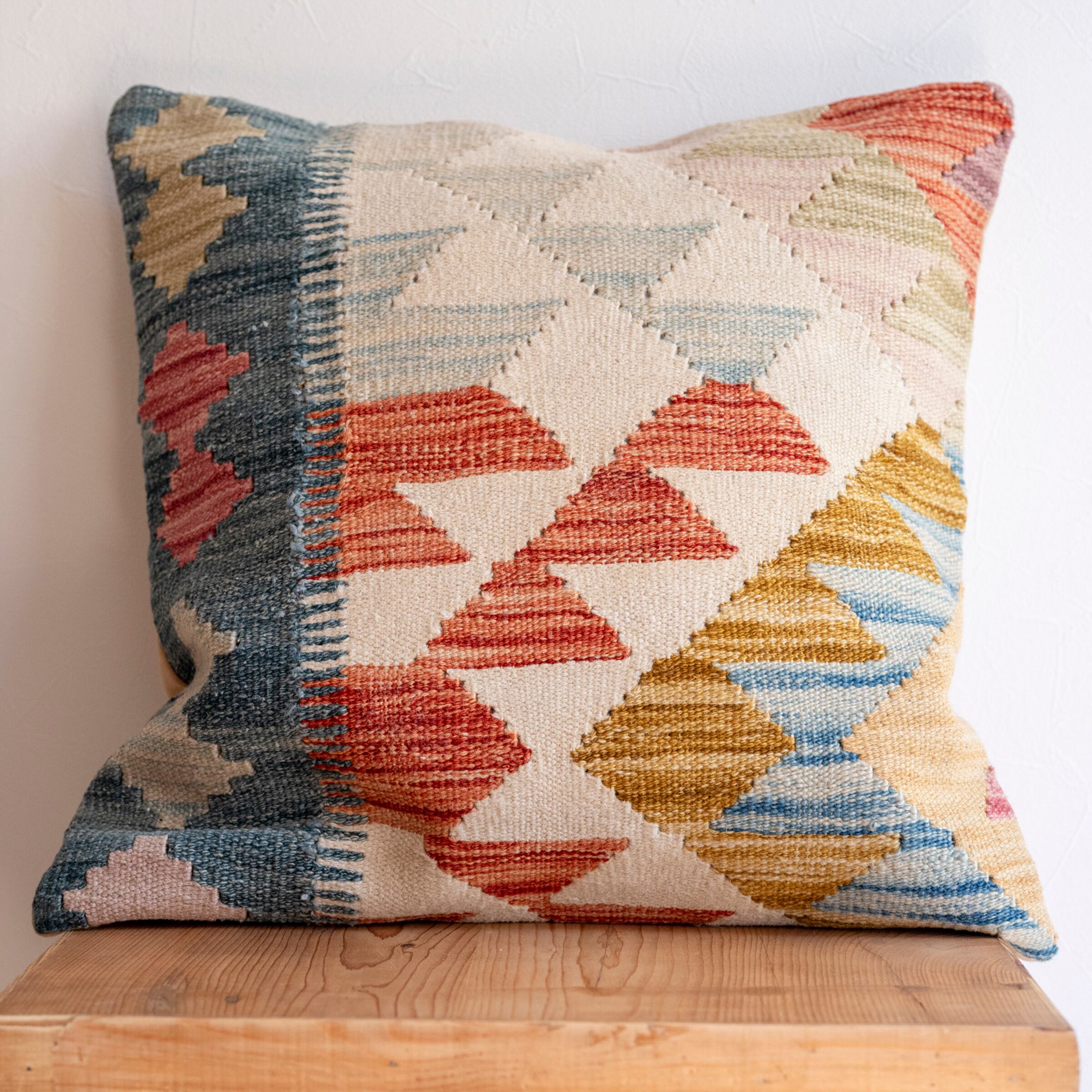 アフガニスタンの手織りキリムで作られたクッションカバー。