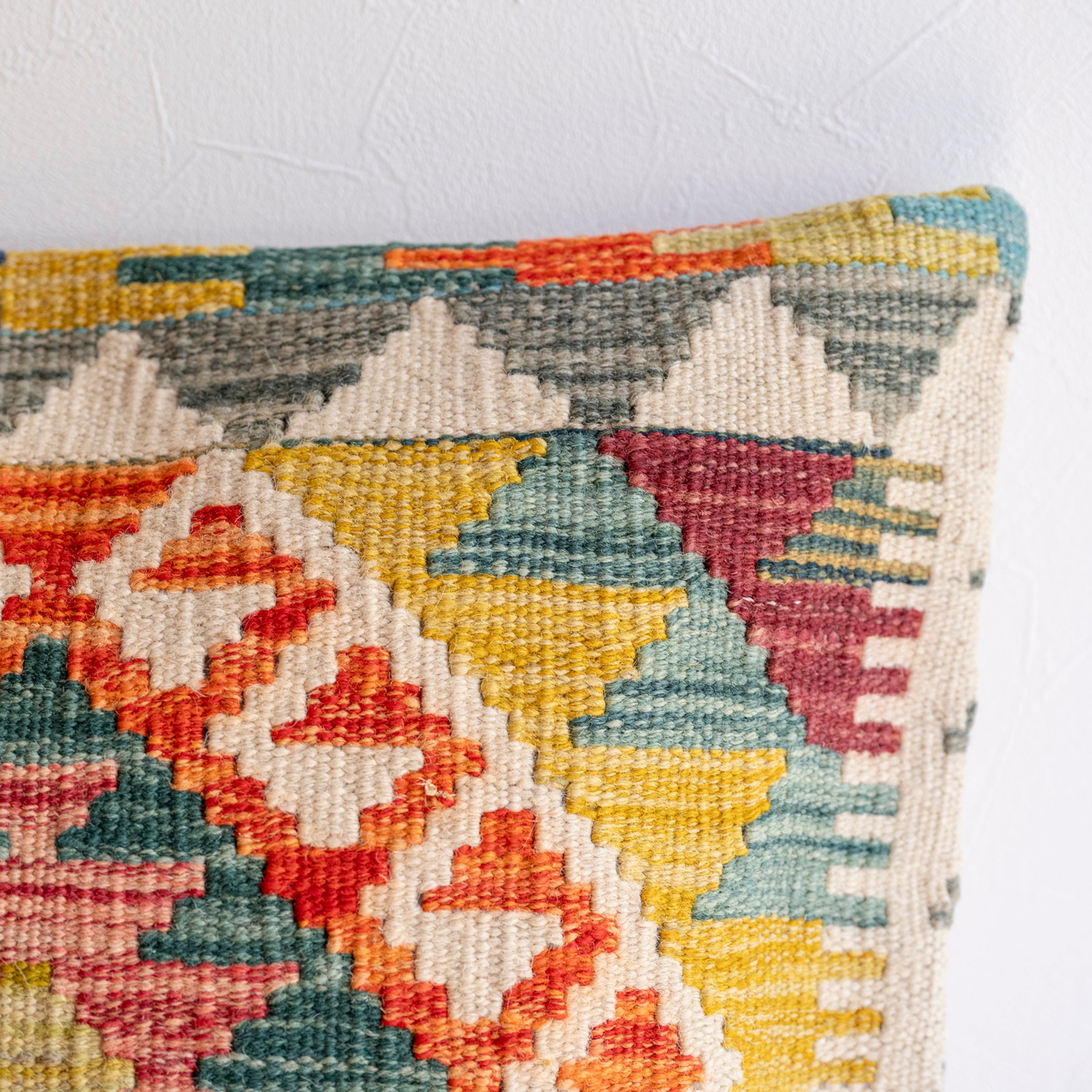 アフガニスタンの手織りキリムで作られたクッションカバー。