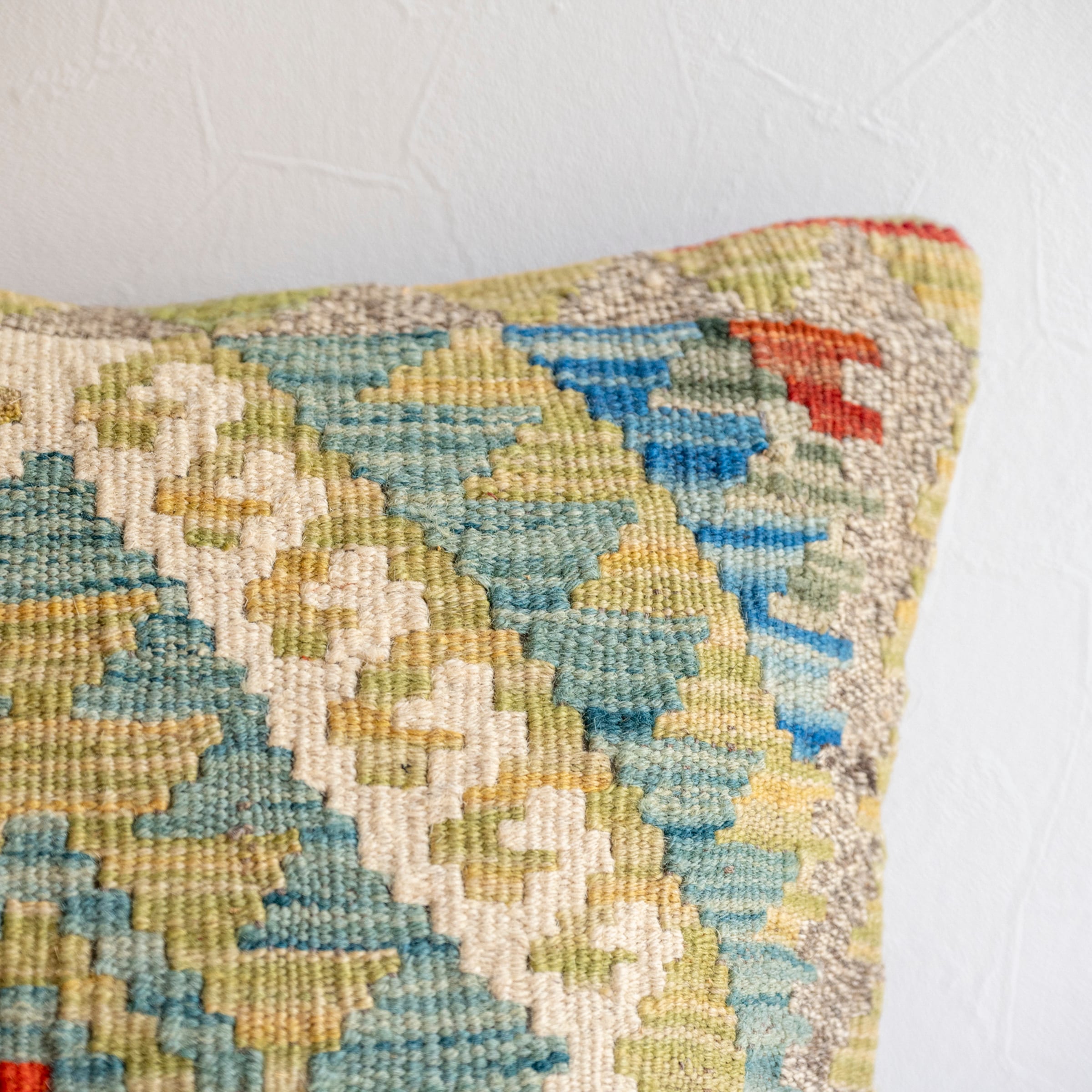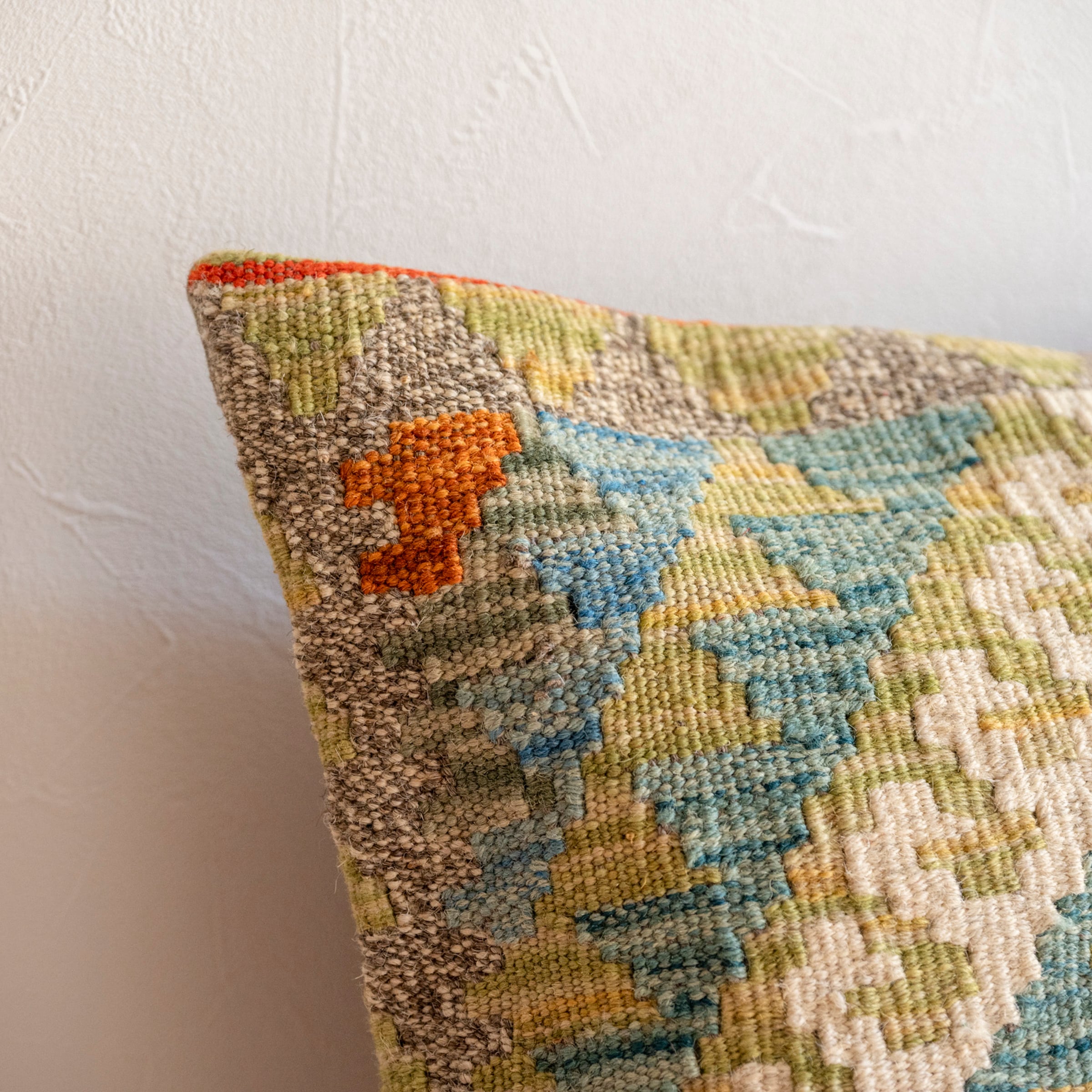 アフガニスタンの手織りキリムで作られたクッションカバー。