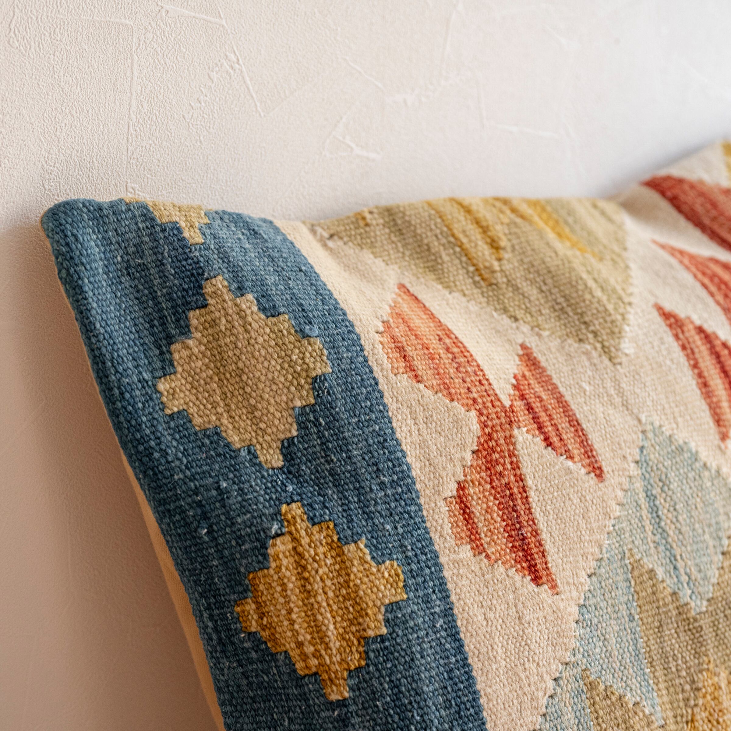 丈夫なウールでできたキリムの触り心地は、