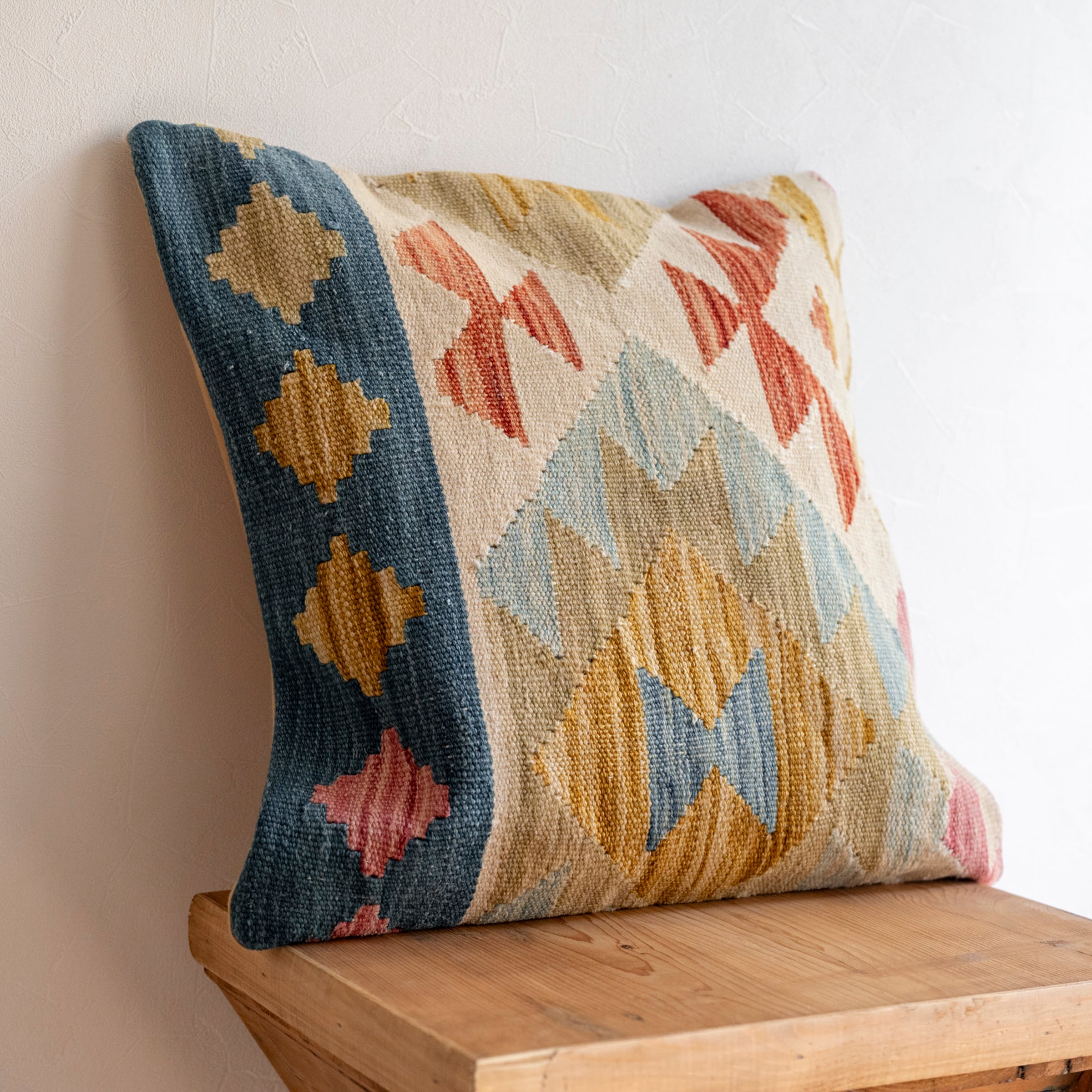 アフガニスタンの手織りキリムで作られたクッションカバー。